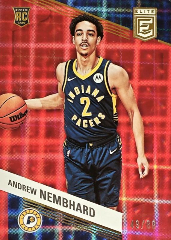 This card is 1 of 34 Andrew Nembhard's card variations in the 2022 Elite set being tracked by Sports Card Investor, including Base, Asia Hyper Red & Green, Aspirations (/98), Orange, and Status (/2).