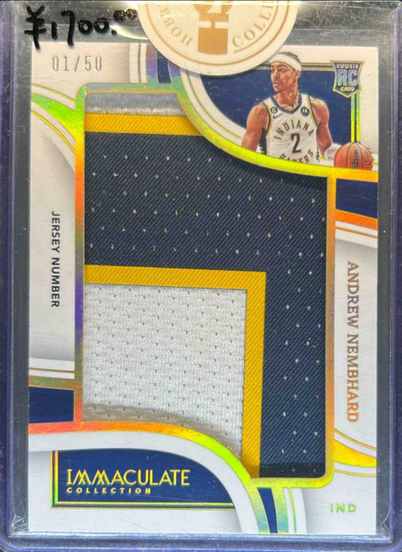 Andrew Nembhard 2022 Immaculate #JP-ANI Jumbo Patches Jersey Number /10 Rookie RAW Price Guide