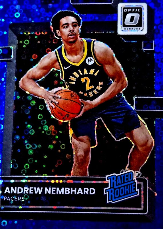 The Andrew Nembhard 2022 Optic #230 Fast Break Blue /49 Rookie card in Raw condition has not changed in price in the last 30 days and was last sold for $9.49 .