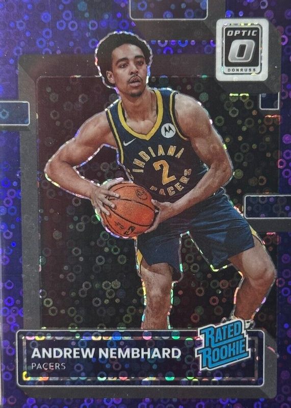 2022-23 Andrew Nembhard Optic Rated Rookie Purple Disco /99 RC #230