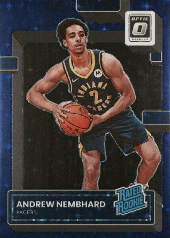 The Andrew Nembhard 2022 Optic #230 Purple Stars FOTL /17 Rookie card in Raw condition has not changed in price in the last 30 days and was last sold for $19.99 .