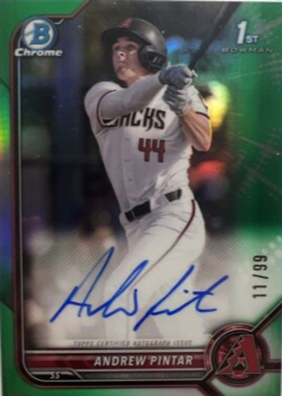 ANDREW PINTAR 2022 BOWMAN CHROME DRAFT 1ST GREEN REFRACTOR AUTO /99 Q0913
