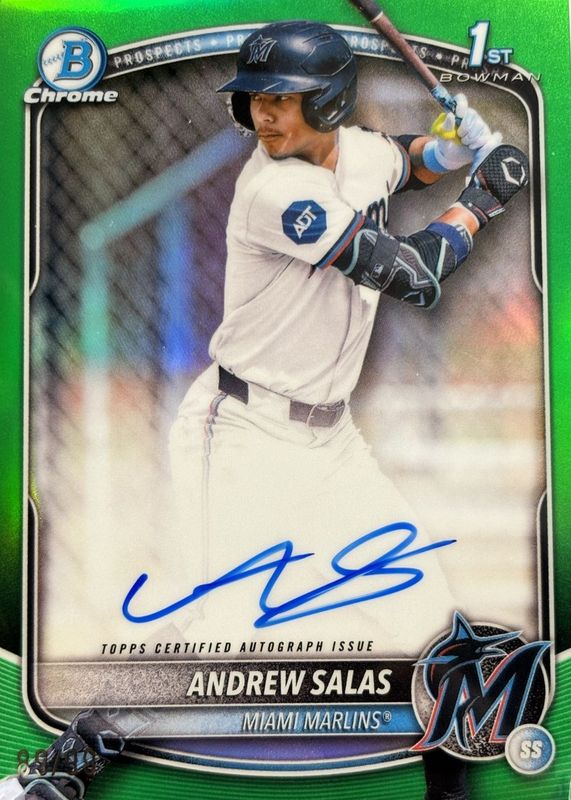 2025 Bowman Chrome ANDREW SALAS GREEN 1ST AUTO #80/99! MARLINS