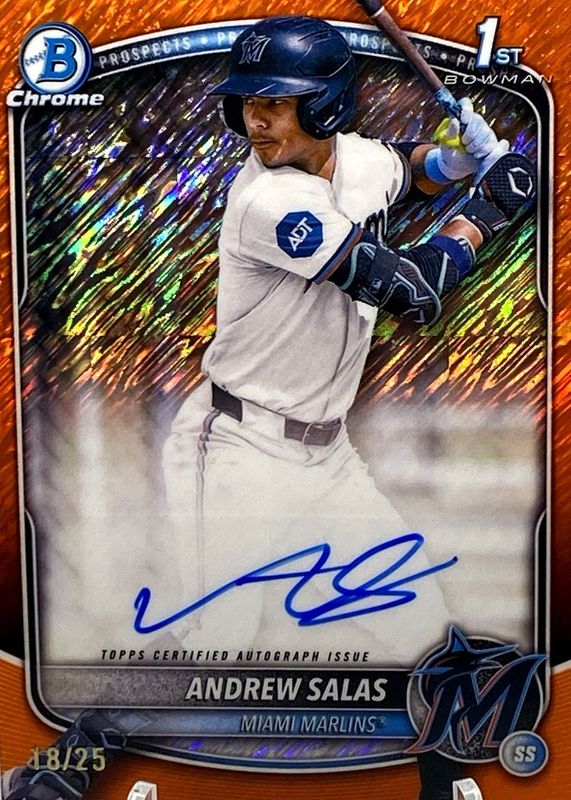 Andrew Salas 2025 Bowman Chrome #CPA-AS Prospect Auto - Orange Shimmer Refractor /25 (1st) RAW Price Guide