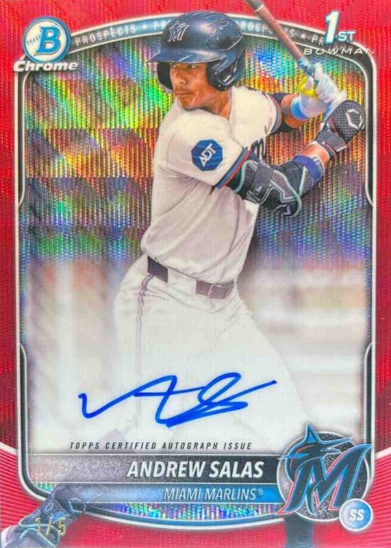 Auctions Ending Soon for Andrew Salas 2025 Bowman Chrome #CPA-AS Prospect Auto - Red Wave Refractor /5 (1st) RAW