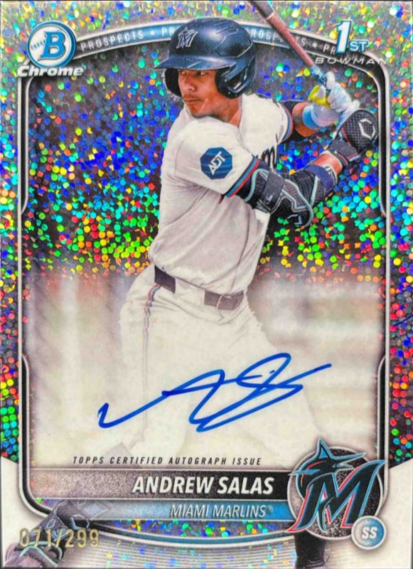2025 Bowman 1st Chrome ANDREW SALAS Auto Speckle Refractor /299 CPA-AS Marlins
