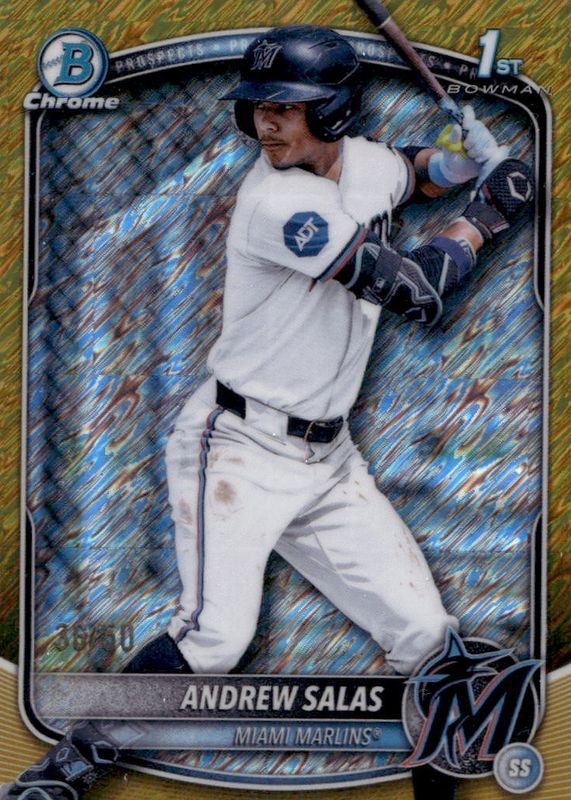 2025 Topps Bowman Chrome Gold Shimmer #BCP-156 Andrew Salas 1st 31/50 Marlins HD