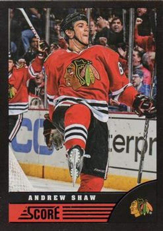 The Andrew Shaw 2013 Score #105 Black card is 1 of 5 Andrew Shaw's card variations in the 2013 Score set being tracked by Sports Card Investor, including Base, Gold, Red, and Red Back.