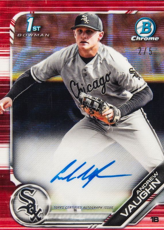 Auctions Ending Soon for Andrew Vaughn 2019 Bowman Draft #CDA-AV Chrome DP Auto - Red Wave Refractor /5 (1st) RAW