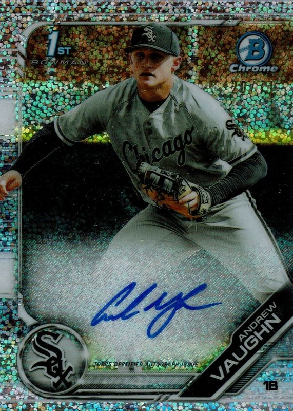 Best Prices Available For Sale of Andrew Vaughn 2019 Bowman Draft #CDA-AV Chrome DP Auto - Sparkles Refractor /71 (1st)