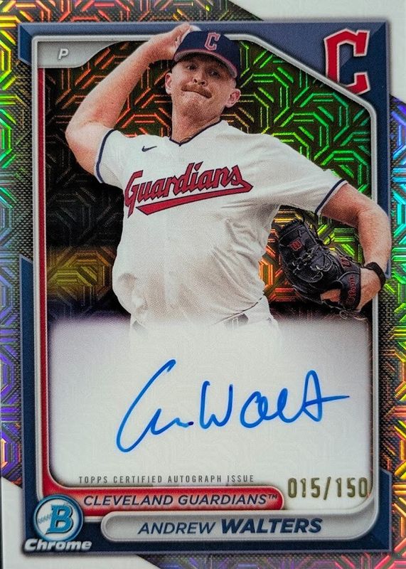This card is 1 of 25 Andrew Walters' card variations in the 2024 Bowman Chrome set being tracked by Sports Card Investor, including Prospect Auto, Prospect Auto - Refractor /499, Prospect Auto - Speckle Refractor /299, Prospect Auto - Purple Refractor /250, and Prospect Auto - Blue RayWave Refractor /150.