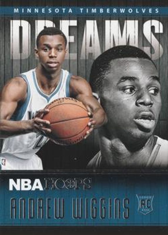 The Andrew Wiggins 2014 Hoops #3 Dreams Rookie card is 1 of 20 Andrew Wiggins' card variations in the 2014 Hoops set being tracked by Sports Card Investor, including Base, Gold, Green, Red Back, and Silver /399.