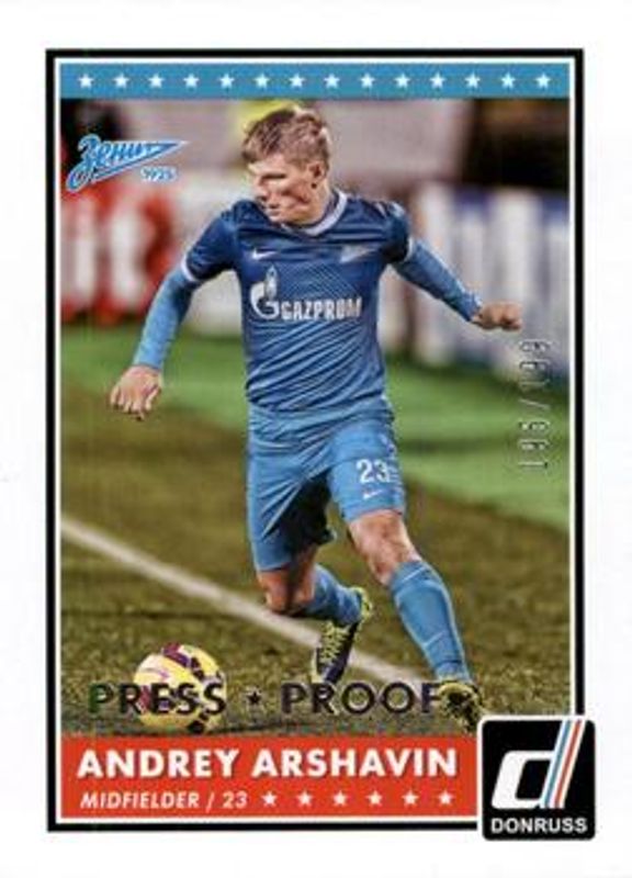 Andrey Arshavin 2015 Donruss #83 Silver Press Proof /199 RAW Price Guide