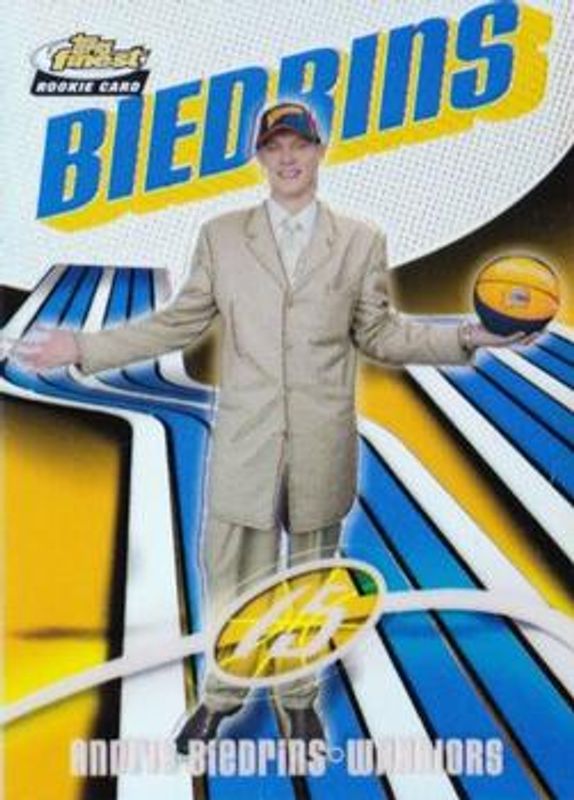 The Andris Biedrins 2003 Topps Finest #183 Refractor /250 card is 1 of 8 Andris Biedrins' card variations in the 2003 Topps Finest set being tracked by Sports Card Investor, including Base /999, Gold Refractor /25, Printing Plate Black /1, Printing Plate Cyan /1, and Printing Plate Magenta /1.