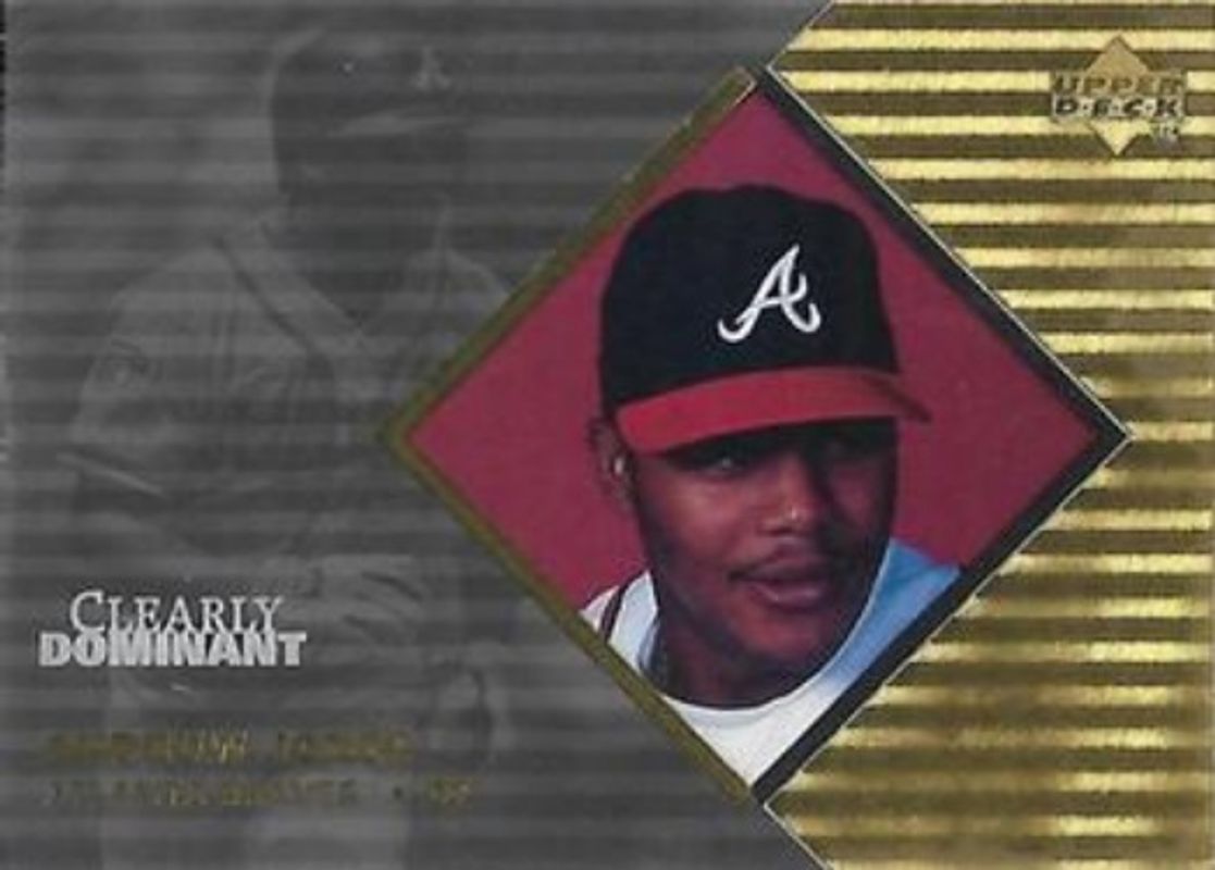 The Andruw Jones 1998 Upper Deck #CD25 Clearly Dominant /250 card is 1 of 12 Andruw Jones' card variations in the 1998 Upper Deck set being tracked by Sports Card Investor, including #151 Base, #305 Base, #627 Base, #AS5 All Star Credentials, and #AG29 Amazing Greats.