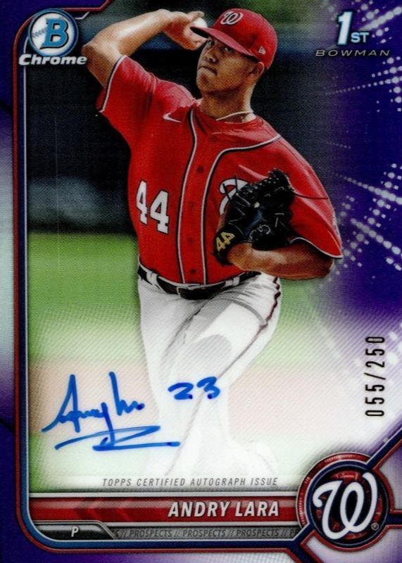 2022 1st Bowman Chrome ~ Andry Lara ~ Purple Refractor 016/250 ~ Auto ~ Nats