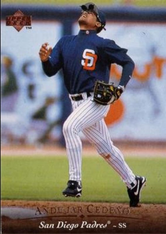 The Andujar Cedeno 1995 Upper Deck #373 Base card is 1 of 5 Andujar Cedeno's card variations in the 1995 Upper Deck set being tracked by Sports Card Investor, including Electric Diamond, Electric Diamond Gold, Special Edition, and Special Edition Gold.