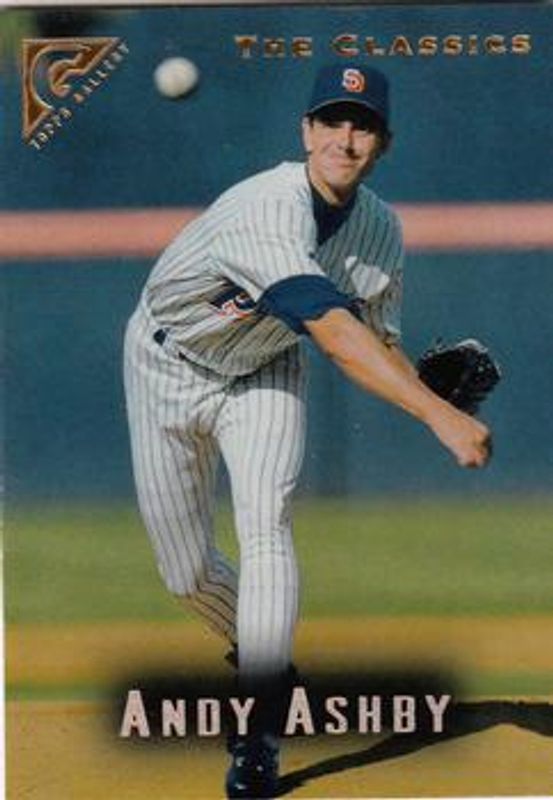 The Andy Ashby 1996 Topps Gallery #61 Base card is 1 of 2 Andy Ashby's card variations in the 1996 Topps Gallery set being tracked by Sports Card Investor, including Player's Private Issue /999.