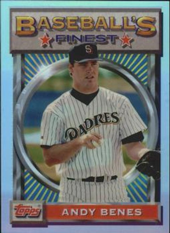 The Andy Benes 1993 Topps Finest #19 Refractor card is 1 of 2 Andy Benes' card variations in the 1993 Topps Finest set being tracked by Sports Card Investor, including Base.