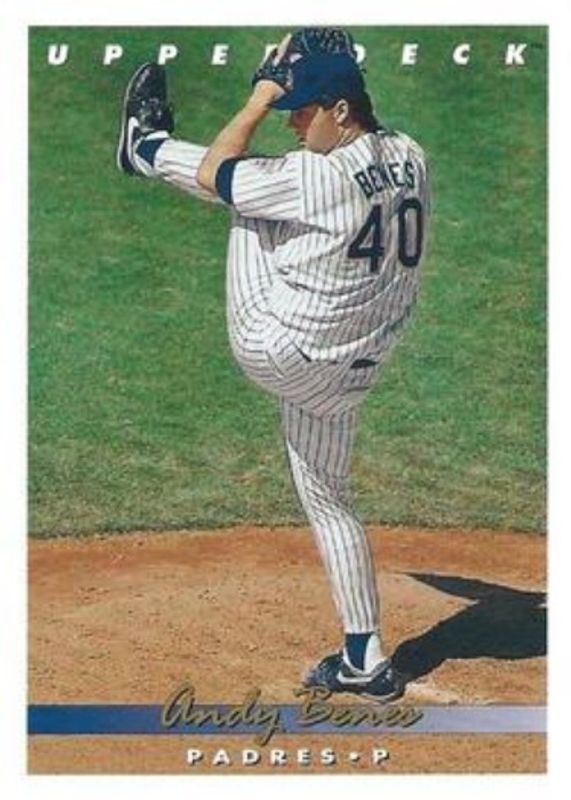 The Andy Benes 1993 Upper Deck #261 Base card is 1 of 2 Andy Benes' card variations in the 1993 Upper Deck set being tracked by Sports Card Investor, including Gold Hologram.