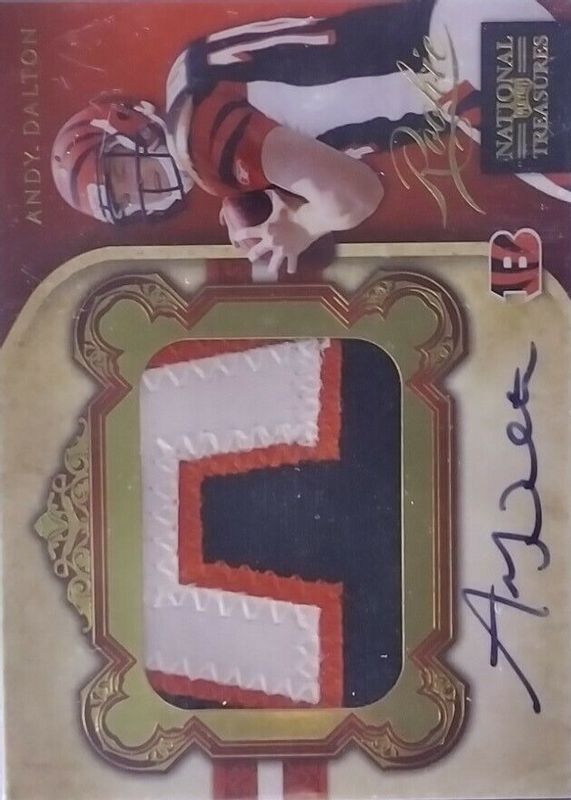 Andy Dalton's Football cards are available in at least 21 sets. Andy Dalton's biggest 7-day price movers are 2011 National Treasures #326 Rookie Patch Auto - Gold /49, 2019 Elite #58 Gold FOTL /8, and 2019 Origins #21 Printing Plate Magenta /1.