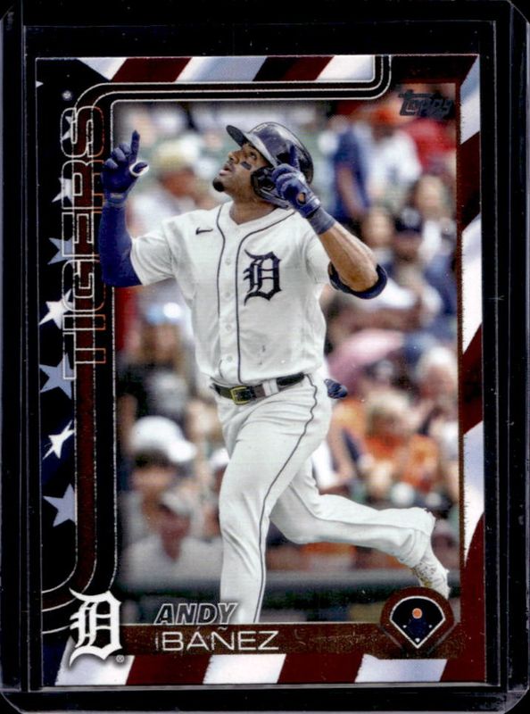 The Andy Ibanez 2025 Topps #442 Independence Day /76 card is 1 of 56 Andy Ibanez's card variations in the 2025 Topps set being tracked by Sports Card Investor, including Base, Aqua Holo Foil, Diamante Foil, Holo Foil, and Pink Diamante Foil.