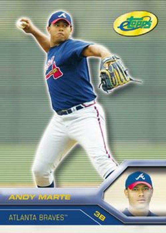 The Andy Marte 2005 eTopps #99 Base card is 1 of 2 Andy Marte's card variations in the 2005 eTopps set being tracked by Sports Card Investor, including Certificate of Issuance.