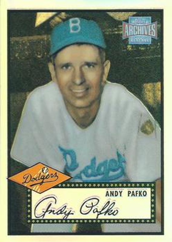 The Andy Pafko 2001 Topps Archives Reserve #62 Base card is 1 of 2 Andy Pafko's card variations in the 2001 Topps Archives Reserve set being tracked by Sports Card Investor, including Autographed Baseballs.