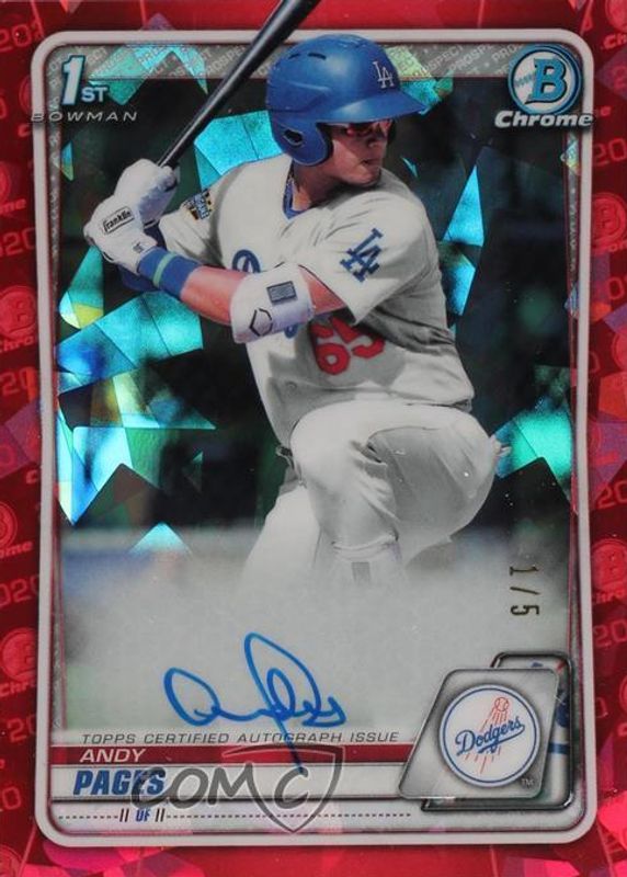 Andy Pages 2020 Bowman Sapphire Edition #BSPA-AP Chrome Prospect Auto - Red /5 (1st) RAW Price Guide