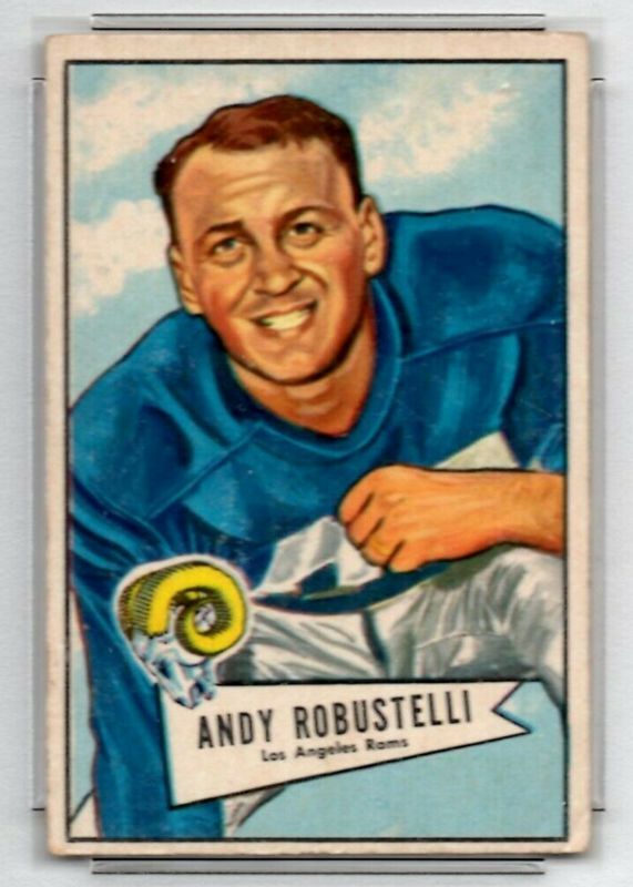 Andy Robustelli's Football cards are available in at least 18 sets. Andy Robustelli's biggest 7-day price movers are 1952 Bowman Small #85 Base, 2017 Certified Cuts #LC-AR Legendary Cuts /99, and 2010 Topps Five Star #FSCS-47 Cut Signatures /1.