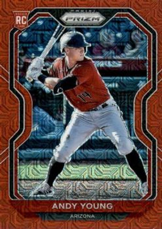The Andy Young 2021 Prizm #61 Red Mojo /149 Rookie card is 1 of 69 Andy Young's card variations in the 2021 Prizm set being tracked by Sports Card Investor, including Base, Blue, Blue Velocity, Carolina Blue, and Cosmic Haze.