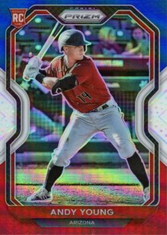 The Andy Young 2021 Prizm #61 Red White Blue Rookie card is 1 of 69 Andy Young's card variations in the 2021 Prizm set being tracked by Sports Card Investor, including Base, Blue, Blue Velocity, Carolina Blue, and Cosmic Haze.