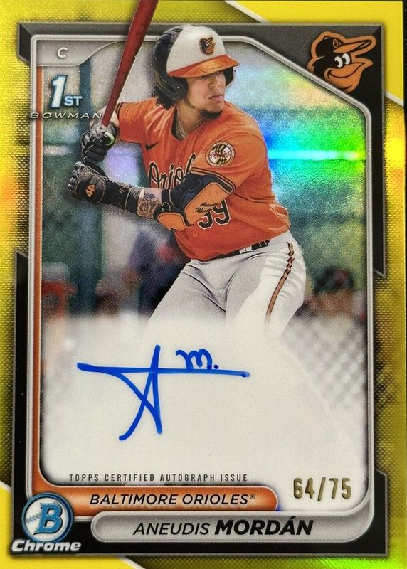 Auctions Ending Soon for Aneudis Mordan 2024 Bowman #CPA-AMO Chrome Prospect Auto - Yellow Refractor /75 (1st) RAW