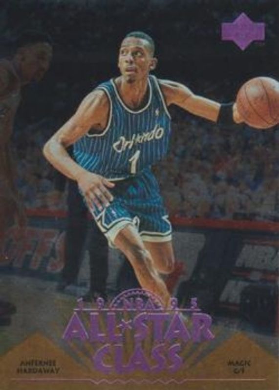 The Anfernee Hardaway 1995 Upper Deck #AS1 All Star Class card is 1 of 18 Anfernee Hardaway's card variations in the 1995 Upper Deck set being tracked by Sports Card Investor, including #316 Base, #277 Base, #170 Base, #170 Electric Court, and #277 Electric Court.
