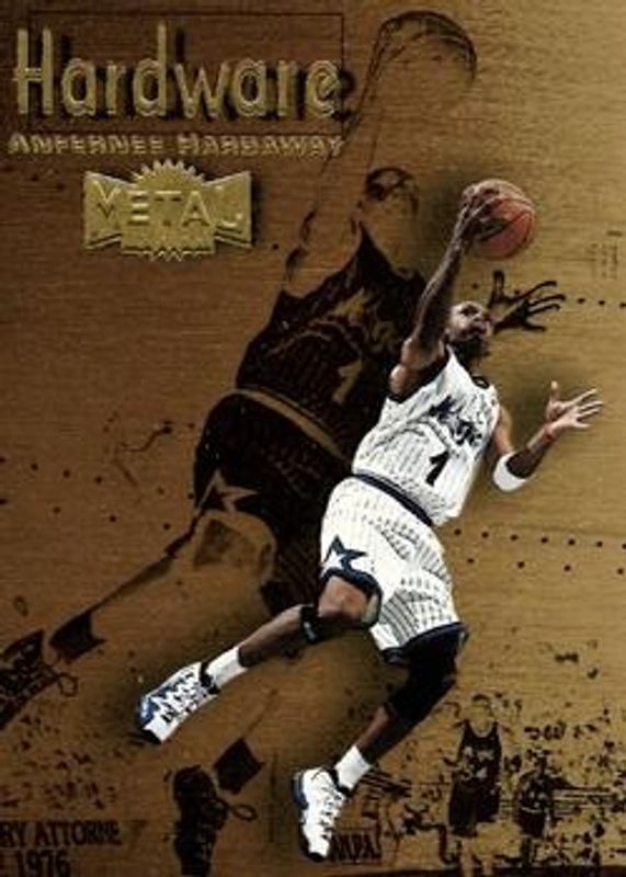 The Anfernee Hardaway 1997 Metal Universe Championship #14 H Hardware card is 1 of 5 Anfernee Hardaway's card variations in the 1997 Metal Universe Championship set being tracked by Sports Card Investor, including Base, Precious Metal Gems /50, All-Millennium Team, and Championship Galaxy.