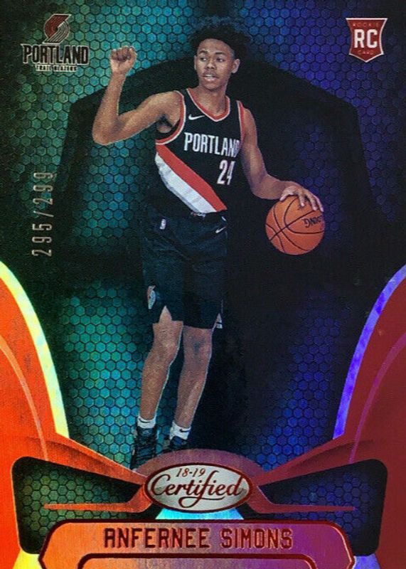 ANFERNEE SIMONS 2018-19 PANINI CERTIFIED ROOKIE RED /299 PORTLAND TRAIL BLAZERS