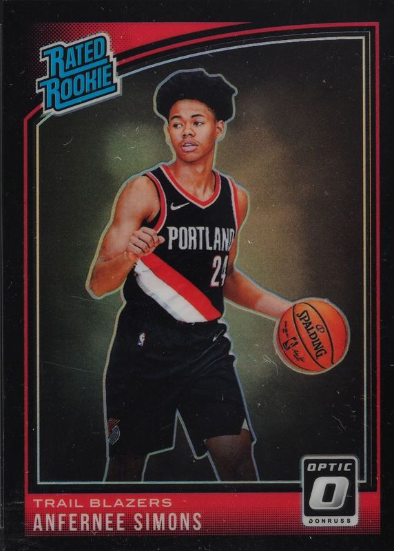 This card is 1 of 62 Anfernee Simons' card variations in the 2018 Optic set being tracked by Sports Card Investor, including Base, Blue Velocity, Checkerboard, Choice, and Fast Break.