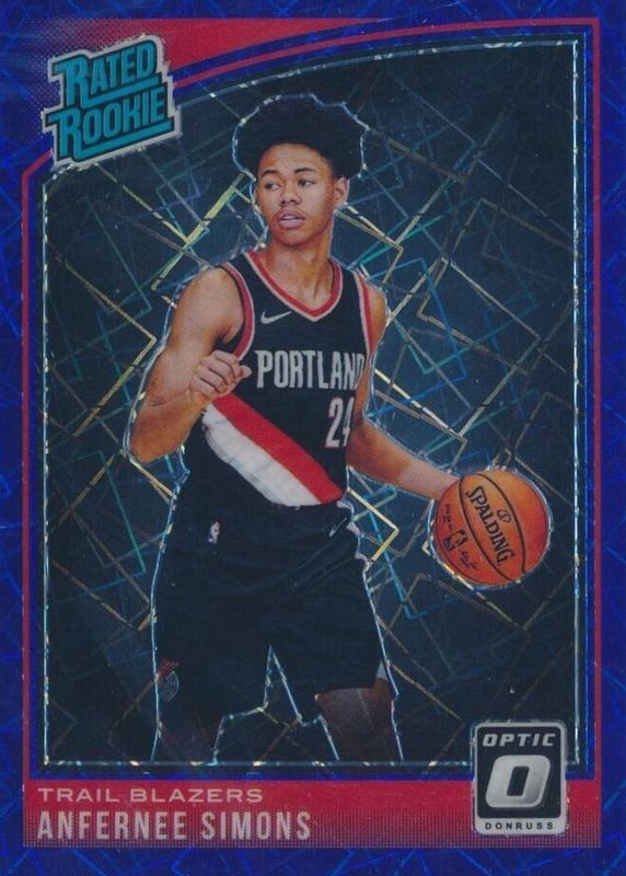 2018 Donruss Optic Anfernee Simons Blue Velocity Rated Rookie #186 Trail Blazers