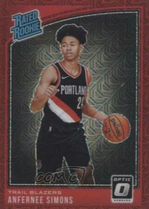 2018-19 PANINI DONRUSS OPTIC RC #186 ANFERNEE SIMONS CHOICE RED PRIZM 31/88