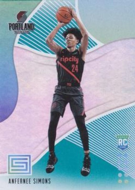 The Anfernee Simons 2018 Status #140 Aqua Rookie card is 1 of 29 Anfernee Simons' card variations in the 2018 Status set being tracked by Sports Card Investor, including #190 Base, #140 Base, #190 Blue, #140 Green, and #140 Orange.