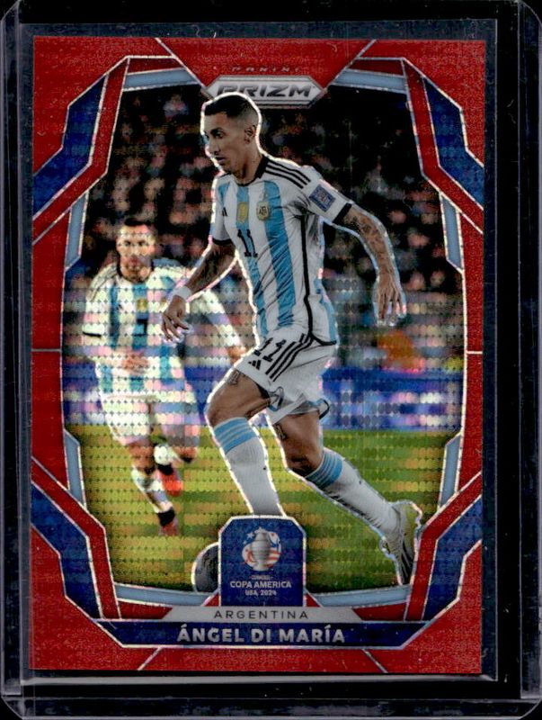 The Angel Di Maria 2024 Prizm Copa America #13 Red Pulsar /125 card is 1 of 39 Angel Di Maria's card variations in the 2024 Prizm Copa America set being tracked by Sports Card Investor, including Base, Green Ice, Green Wave, Hyper, and Ice.