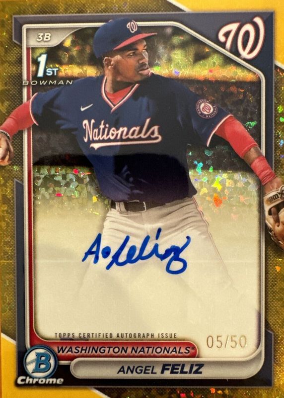 2024 Bowman Chrome Auto Gold Mini Diamond Angel Feliz #CPAAF #/50 Nats