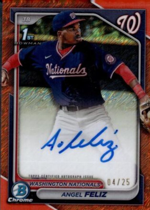 Best Prices Available For Sale of Angel Feliz 2024 Bowman Chrome #CPA-AF Prospect Auto - Orange Shimmer Refractor /25 (1st)