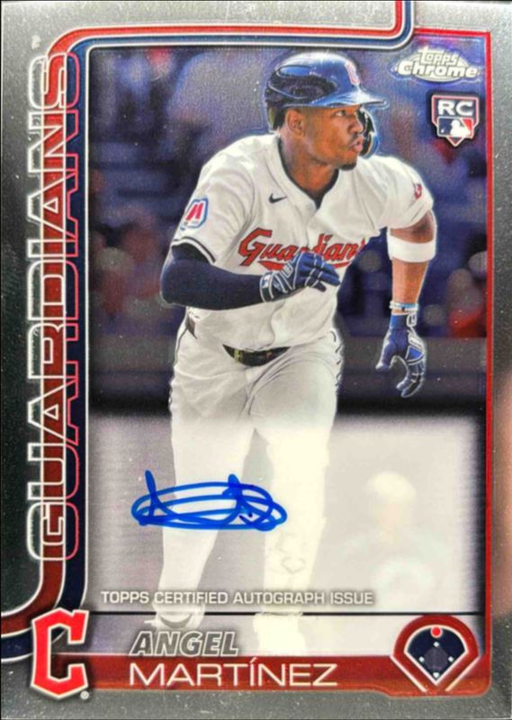 The Angel Martinez 2025 Topps Chrome #RA-AMA Rookie Autographs card is 1 of 81 Angel Martinez's card variations in the 2025 Topps Chrome set being tracked by Sports Card Investor, including Base, Geometric Refractor, Lightboard Logo Variation, Negative Refractor, and Prism Refractor.