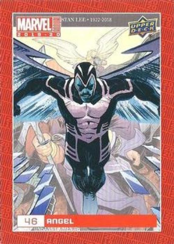 The Angel 2019 Upper Deck Marvel Annual #46 Base card is 1 of 9 Angel's card variations in the 2019 Upper Deck Marvel Annual set being tracked by Sports Card Investor, including Fractal, Pack Wars, Variant Cover, Hologram /20, and Printing Plate Cyan /1.