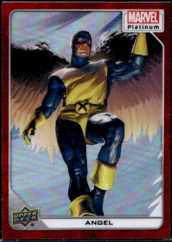 The Angel 2023 Upper Deck Marvel Platinum #14 Red Rainbow card is 1 of 71 Angel's card variations in the 2023 Upper Deck Marvel Platinum set being tracked by Sports Card Investor, including #14 Base, #193 Base, #14 Black Rainbow, #193 Black Rainbow, and #14 Blue Rainbow.