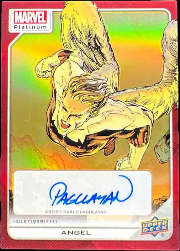 The Angel 2023 Upper Deck Marvel Platinum #193 Red Rainbow Autographs card is 1 of 71 Angel's card variations in the 2023 Upper Deck Marvel Platinum set being tracked by Sports Card Investor, including #14 Base, #193 Base, #14 Black Rainbow, #193 Black Rainbow, and #14 Blue Rainbow.