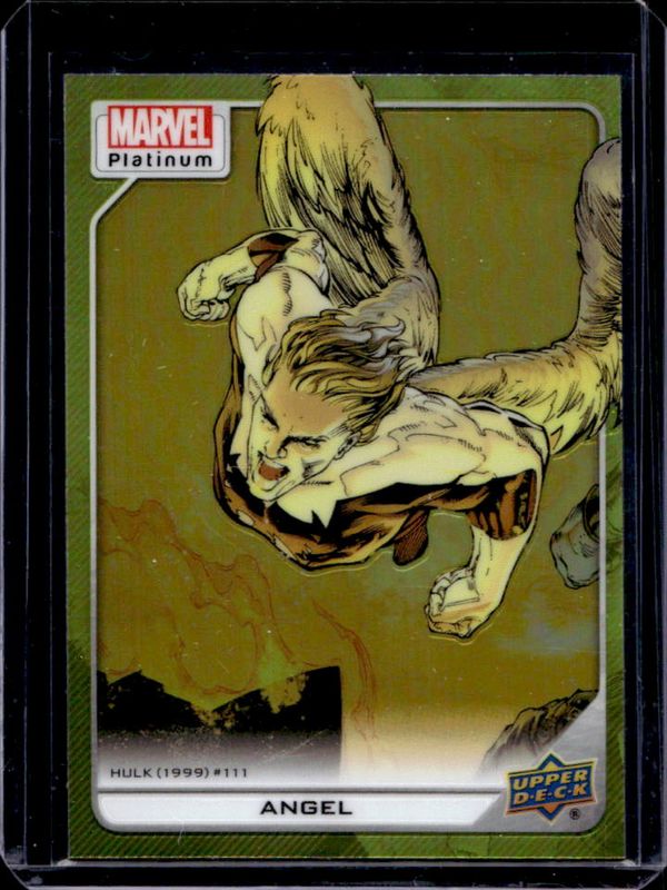 The Angel 2023 Upper Deck Marvel Platinum #193 Yellow Rainbow card is 1 of 71 Angel's card variations in the 2023 Upper Deck Marvel Platinum set being tracked by Sports Card Investor, including #14 Base, #193 Base, #14 Black Rainbow, #193 Black Rainbow, and #14 Blue Rainbow.