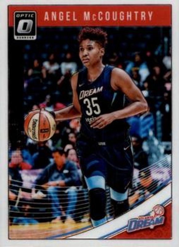 The Angel McCoughtry 2019 Donruss WNBA #1 Optic card is 1 of 19 Angel McCoughtry's card variations in the 2019 Donruss WNBA set being tracked by Sports Card Investor, including Base, Optic Holo, Silver Press Proof /199, Purple Press Proof /99, and Gold Laser Press Proof /10.