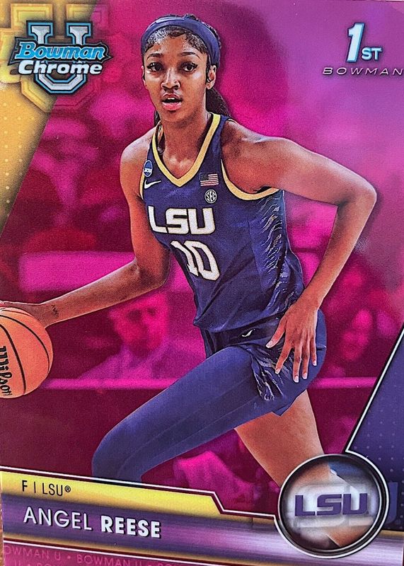 2023-24 Bowman Chrome University Angel Reese Pink Refractor 1st Bowman Rookie